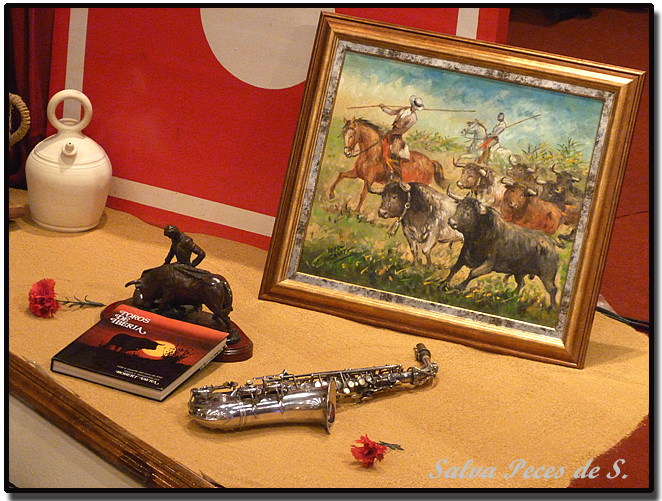 En la ambientación del escenario, un oleo del pintor taurino LÓPEZ CANITO. Este cuadro es sorteado entre los asistentes a la Semana Cultural Taurina al finalizar la misma.